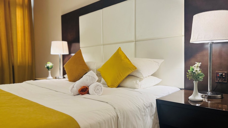 The Deluxe Room offers a blend of comfort and luxury, featuring stylish decor and modern amenities for a relaxing stay. Enjoy a peaceful retreat with high-quality furnishings, a plush bed, and exceptional service.